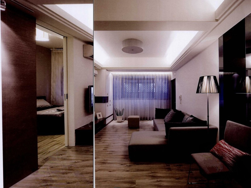 我們家的老房子墻壁剝落嚴(yán)重、畸零空間比較多而且都很暗,還有柜體也都參差不齊的排列著不太美觀。設(shè)計(jì)師給我們重新規(guī)劃的方案,在開門處設(shè)一個(gè)差不多2平方左右的正方形石子地面,與玄關(guān)及客廳的木地板隔開,客廳儲(chǔ)藏室旁的墻面,用黑色鏡面來(lái)裝飾,這種裝飾我在他們裝修公司的墻面也看到過(guò),不僅能放大空間,而且黑色還是永不落伍的時(shí)尚元素。