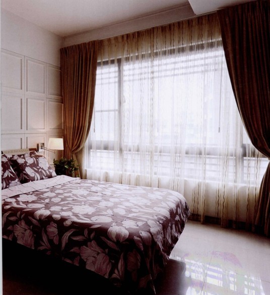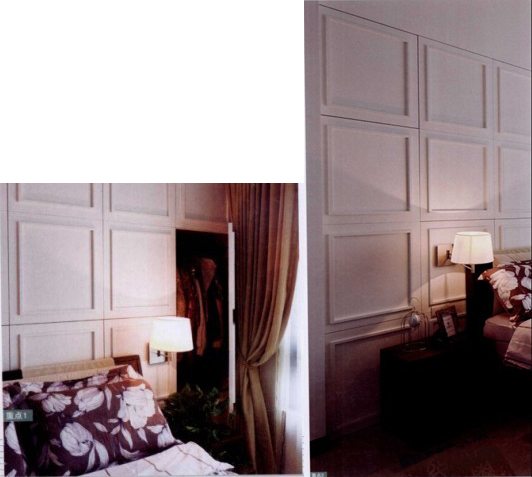 業(yè)主一向秉持清爽簡(jiǎn)約風(fēng)格,床頭的整面收納柜,設(shè)計(jì)師以美式風(fēng)格線板制作門(mén)片,迎合主人的風(fēng)格喜好,也讓人看不出柜體所在。
