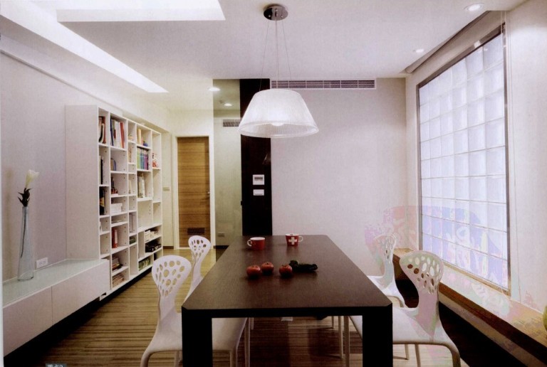 概要: 這是業(yè)主的第二次裝修,業(yè)主有感于前一個(gè)家柜體太多,雖然有利收納,但是剩余空間總想去填滿,反而讓雜增多,而空間也因?yàn)楣耋w太多而顯得壓迫,于是這次特別要求設(shè)計(jì)師讓空間有足夠的書柜及基本的電器及衣物收納及可?! ∫?yàn)闃I(yè)主喜歡讀書,且認(rèn)為書籍是家里最好的裝飾品,所以客廳書柜比電視墻還重要,因此設(shè)計(jì)師特別設(shè)計(jì)造型書架,以利收納各種尺寸的書籍,而層板高度也可依需求而調(diào)整。