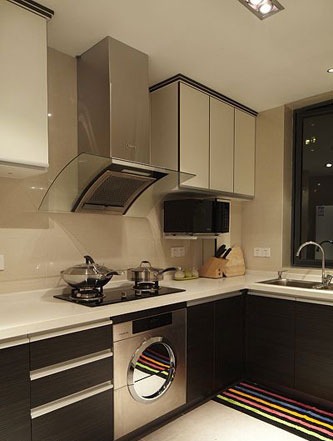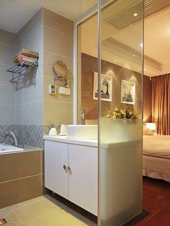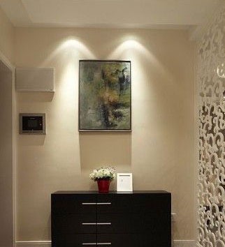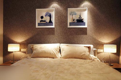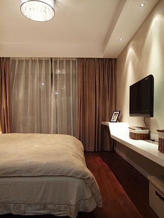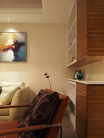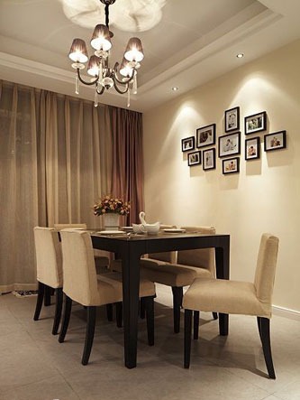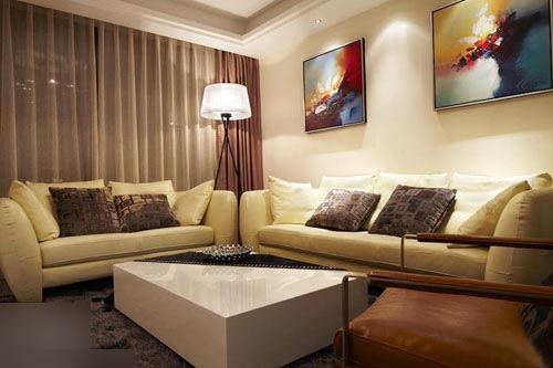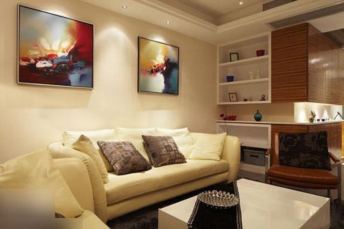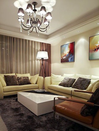 一進房間,整個空間給人一種清爽不失高貴的感覺??蛷d區(qū)域墻面沒有做過多的裝飾,墻面采用米黃色的油漆,客廳的吊頂也沒有做的太復雜只是在墻的邊角走了一圈邊,做成上下疊級的吊頂,并配上水晶吊燈,奶油色的布藝沙發(fā)搭配深色靠墊,既簡單又富有現(xiàn)代感。一個漂亮的落地燈照亮整個房間又起到了很好的裝飾做用,一舉兩得。沙發(fā)背景墻沒必要做的復雜,掛上兩幅簡單油畫,現(xiàn)代感極強。