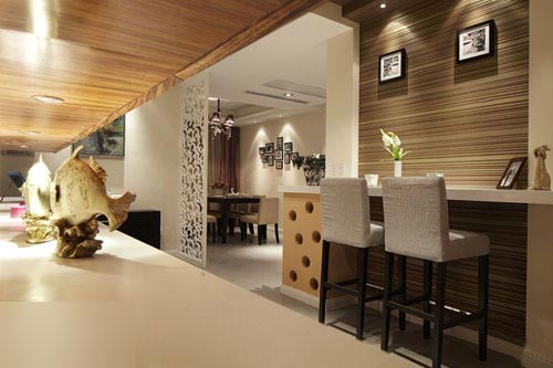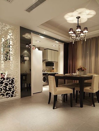 玄關柜,屏風后是餐廳。