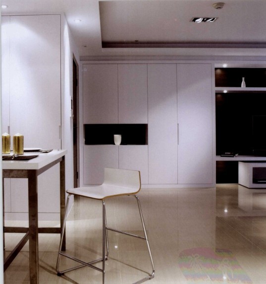 概要: 喜歡簡約風(fēng)格的業(yè)主,原來是想要用黑白對比作為空間的色彩基調(diào),設(shè)計師建議業(yè)主選用深色斑馬木紋取代黑色噴漆效果,讓整個空間除了高反差效果外,仍能感受到木皮濕潤的質(zhì)感。利用白色噴漆作為基色,從入門處收納鞋柜內(nèi)凹的壁面開始,斑馬木紋的點綴持續(xù)出現(xiàn),客廳電視墻大片的斑馬木紋,呈現(xiàn)豐富的層次。