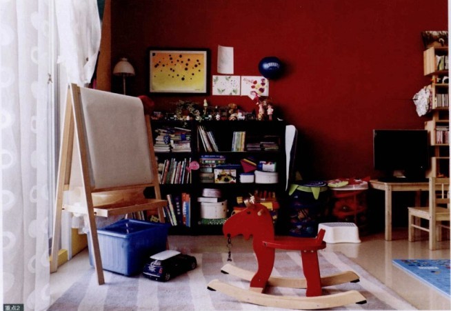 由于家人在客廳活動,所以特別在角落里規(guī)劃小孩專屬的游戲及閱讀空間,為了配合小孩的身高,書柜或置放玩具的柜子都設(shè)計得較矮,讓他們從小養(yǎng)成自己的習(xí)慣。