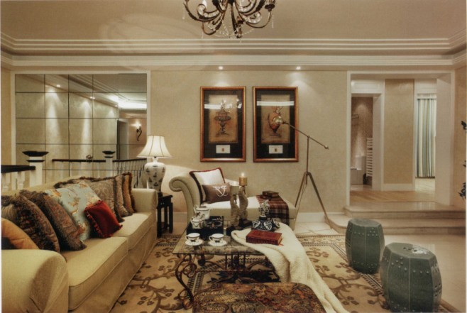 本案的設(shè)計師選用天然材料,用簡潔、明晰的線條進(jìn)行裝飾,與穿金戴銀、色彩夸張的歐式風(fēng)格家居相比,該風(fēng)格更具親和力,向人們傳遞了一種自然而純粹的美,體現(xiàn)了人們對舒適、寧靜生活的向往。沙發(fā)的色調(diào)古樸而典雅,以溫暖柔和的色彩為主色調(diào)。其造型端莊凝重,設(shè)計大氣磅礴,坐感舒適,流露出溫馨、浪漫和時尚感。在美式風(fēng)格家居中,文化和歷史的包容性是一大特點(diǎn),可以在本案的設(shè)計中看到中式元素的影子。大氣、經(jīng)典,細(xì)節(jié)精雕細(xì)琢,都是美式休閑風(fēng)格的表達(dá)。松軟的坐墊與靠背,可隨意搭配的抱枕,再配上傳統(tǒng)美式涂裝效果的雕飾線條,讓人感受到恬靜典雅、休閑舒適的居室氛圍,其成為了現(xiàn)代人追求高品質(zhì)生活的首選。