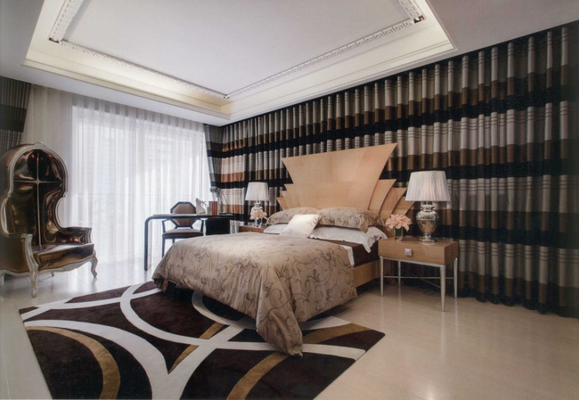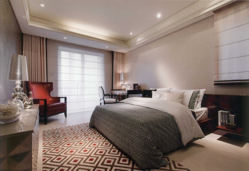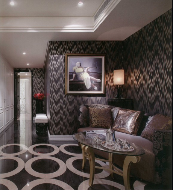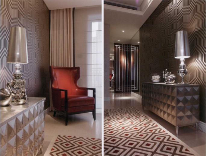 本戶型面積較大,為了打造富豪門第、都會(huì)城堡般的格調(diào),大量運(yùn)用對(duì)比強(qiáng)烈的色彩,耀眼夸飾的藝術(shù)造型突顯其不凡,以展現(xiàn)時(shí)尚莊園豪邸的大氣尺度。在空間裝修上,設(shè)計(jì)師運(yùn)用西方古典工藝的嚴(yán)謹(jǐn)精湛手法,同時(shí)將東方文藝復(fù)興的精神注入其中。整體空間氛圍傳遞著西方的浪漫,卻也輕訴著東方的曼妙----透過(guò)古典與現(xiàn)代裝飾藝術(shù)的交匯融合,顯示出復(fù)古、融匯、創(chuàng)新與再生的精神。老上海的清新魅力,為空間注入豐碩的生命力,也為居住者帶來(lái)全新的心靈悸動(dòng)。