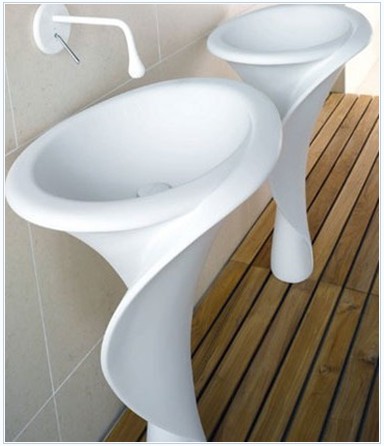 意大利的一家家具設(shè)計(jì)公司從馬蹄蓮上得到靈感,而創(chuàng)作的一系列花朵造型的潔具。該系列包括了一個(gè)獨(dú)立的浴缸,兩個(gè)洗臺(tái)盆和相匹配的白色水龍頭,簡(jiǎn)潔的線條雕刻讓浴室看起來富有創(chuàng)造性。
