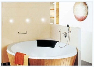 圓形浴缸的外表使用實(shí)木板條裝飾,給人自然親切的感覺。浴缸的邊沿有一個(gè)坡度,靠?jī)?nèi)側(cè)的部分比較高,依靠起來更加舒適??客鈧?cè)的部分略低一些,進(jìn)出浴缸就更安全了。父母和孩子一起洗浴,輕輕地按摩能夠給孩子帶來更多的舒適感和安全感。