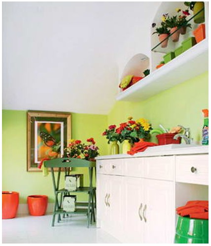 概要: 臥室是休憩的地方,墻壁的顏色不妨以淡雅寧謐為主。淡綠色就是非常不錯(cuò)的選擇,既點(diǎn)綴了臥室的色彩,也不至于過(guò)分濃重而影響睡眠。頂樓的房間通常由于空間狹小不太容易利用,不如打造成一間花房。保留天花板斜頂?shù)陌咨?,將下面的墻面漆成果綠,不只讓花房更明媚,還可以起到延伸空間的作用。