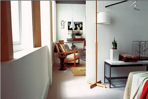 臥室和客廳設(shè)計用一堵墻隔開,讓狹隘的空間不會顯得那么拘束,視野開闊。