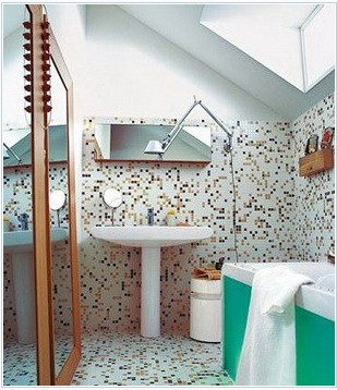 衛(wèi)浴間采用五彩的馬賽克裝修,色彩活躍跳動!