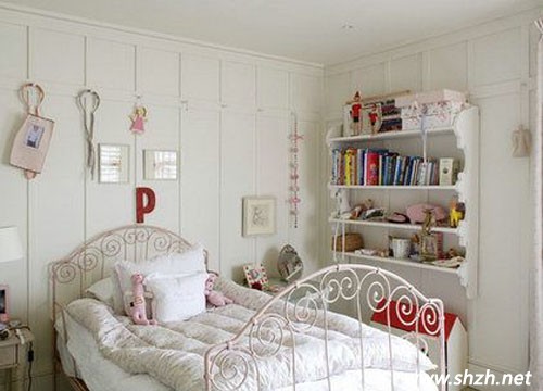 雖說新婚夫婦沒有那么快有小孩,但是給未來的小孩準(zhǔn)備他們應(yīng)有的獨(dú)立空間是必要的。代替壁畫,用可愛的雕飾點(diǎn)綴墻壁,搭配浪漫少女公主風(fēng)的鐵藝床,讓小孩的房子也有甜甜的味道。