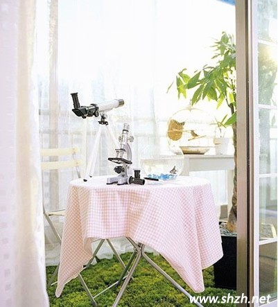 不要以為陽臺就是只曬衣服的地方,對于小戶型的家庭,空間有限,那么你就完全可以把它變成一個完美的小餐廳。一張簡約的小餐椅是個不錯的選擇,再搭配多彩的地毯,使整個空間變得活躍起來,再種點綠色植物,點綴這個小小餐廳,那么,陽臺就會變得活力而有 生機了。