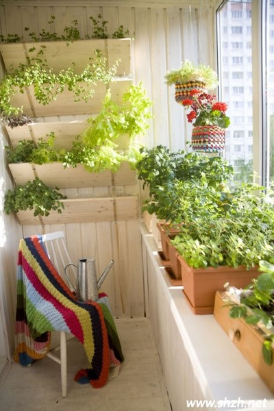 在地板上鋪一層簡單的木地板會帶來不錯的效果哦!如果只是光禿禿的水泥地的話放置鮮花盆栽就會顯得很單調(diào)。如果你想把陽臺打造成清新淡雅的小花園的話,那么就要在選擇植物上花點(diǎn)心思了,且在色彩的搭配上、種類的挑選上都要細(xì)心注意。