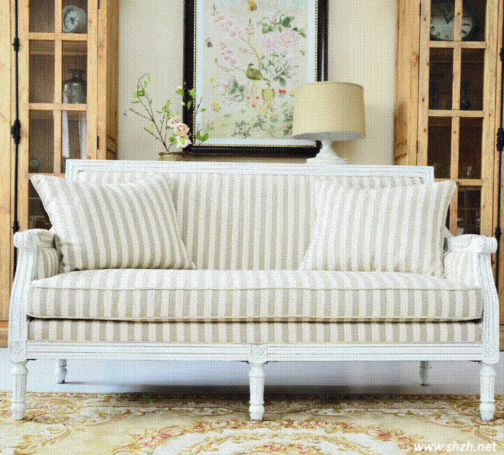 時尚簡約現(xiàn)代風格的三人布藝條紋沙發(fā),作為實木家具紋理清晰美觀、典雅古樸。在模仿古老家具的同時,純白與條紋的搭配盡顯現(xiàn)代風格的秀美,適合搭配春日的陽光安逸的享受美好的時光。