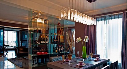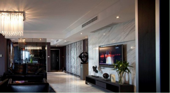 設(shè)計(jì)師試圖營(yíng)造一種低調(diào)奢華的現(xiàn)代簡(jiǎn)約氛圍,一種既厚重華麗又具時(shí)尚特色的視覺效果。整個(gè)空間用硬朗的金屬和玻璃與柔性的墻紙搭配,及黑白兩色的大理石地面相互映襯,再加上家具和軟飾的和諧統(tǒng)一,使的整個(gè)空間時(shí)尚簡(jiǎn)約但又不失奢華。本案中,設(shè)計(jì)師十分注重細(xì)部的處理及創(chuàng)新設(shè)計(jì);