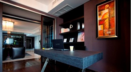 低調(diào)奢華風(fēng)格的裝飾其實(shí)首先要解決一個(gè)色系的問(wèn)題,否則在整體視覺上會(huì)陷入視覺的誤區(qū);本案以紅色+咖啡色+黑色+白色+蘭色運(yùn)用得比較成功;