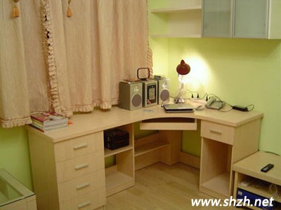 一般家庭都比較民主,房間的背景色彩和家具顏色可以征求孩子的意見,根據(jù)孩子的性別、個性來選擇。但是家長也要有所把握,鮮艷的顏色容易分散孩子的注意力,而且色彩對孩子的成長有一定的影響,家長應根據(jù)孩子的年紀變化而改變房間顏色。設計師建議,兒童書房不可采用過于鮮艷的顏色,選擇以淡雅為好。