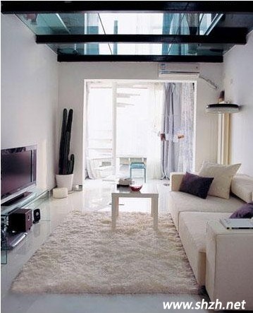 點評:現(xiàn)在很多樓盤的小戶型,面積也許不大,但是挑高卻不錯,甚至可以是越層。面對這樣的空間。白色沙發(fā)大可舒展的與白色地毯,小凳一起組合搭配。