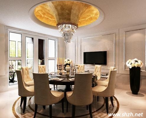 餐廳的布置很簡單,大氣的十人桌,雅致可以是簡約的,簡化的線條、粗獷的體積、自然的材質,卻沒有偽簡約的呆板和單調,在造型設計的構圖理論中吸取其它藝術或自然科學概念,把傳統(tǒng)的構件通過重新組合出現(xiàn)在新的情境之中,追求品味和和諧的色彩搭配,反對強烈的色彩反差和重金屬味道,讓人在空氣中精神得到放松,給用餐營造浪漫的氣氛。