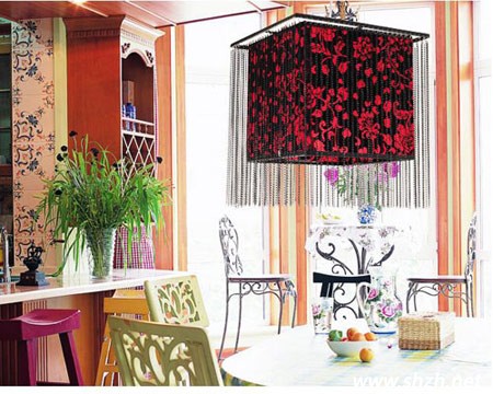 餐廳是大家進(jìn)食的地方,中國(guó)人古話就有:民以食為天。所以說(shuō)中國(guó)人對(duì)于吃是很講究的,那么為你家的餐廳填上一盞喜氣的彩燈會(huì)讓家人食欲大增。像圖中這樣一款黑紅相間的花紋布罩,古典優(yōu)雅與時(shí)尚并存,裝飾性強(qiáng)除外還照亮一片溫馨,黑色噴漆的五金鐵藝,工藝的展現(xiàn),夜間燈光效果溫雅柔和,令人輕松愉快,餐廳的氣氛就應(yīng)當(dāng)是這樣的。