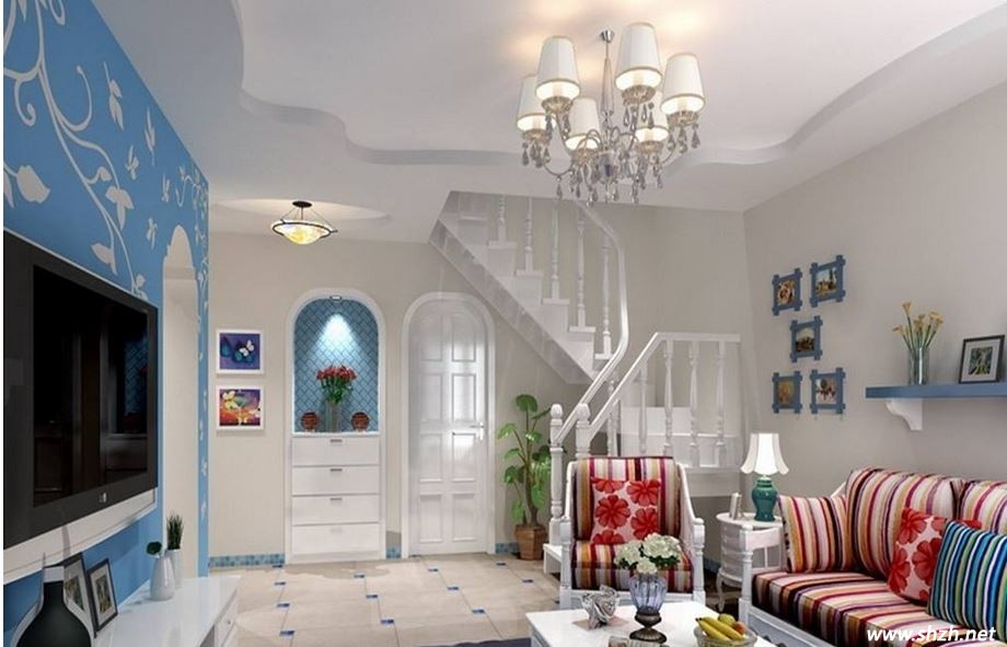 海里說起自己的家顯得很滿意,她興致滿滿跟我們介紹說:西班牙風(fēng)格屬于地中海風(fēng),我們可以感受到濃濃的地中海風(fēng)情,而且細(xì)細(xì)觀察可以發(fā)現(xiàn)在地中海風(fēng)格之外,還有其獨(dú)特之處。海里家的客廳就完美的體現(xiàn)了西班牙風(fēng)多淺色調(diào)的特色,這也是西班牙風(fēng)格最大的特色了。藍(lán)與白的主色調(diào)清新至極,不經(jīng)意間就把自然的氣息帶進(jìn)了家里。為了不讓整體空間看上去單調(diào),設(shè)計(jì)師把沙發(fā)的顏色選擇成鮮艷的紅色,明快的色彩讓客廳充滿活力,給人的感覺是不張揚(yáng)的醒目,溫暖至極。