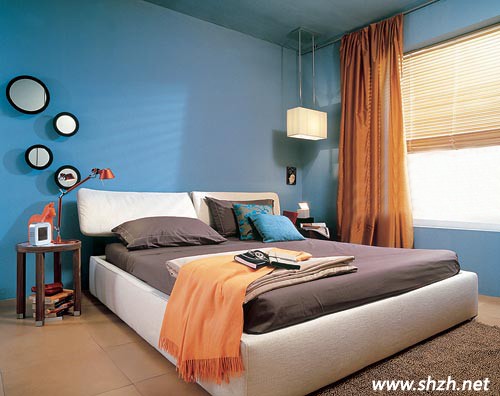 客廳淡雅別致,想不到海里的婚房臥室竟然也沒有過多華麗的裝飾,依舊延續(xù)了客廳安靜的風(fēng)格,這間簡單的臥室雖然沒有在大的裝修上下狠功夫,純藍(lán)的墻面寧靜安逸,但是我們從很多小裝飾上還是看出了海里的用心。土黃和紅褐色可以說是西班牙風(fēng)格中的主流色彩,為了不讓臥室失去特色,海里把窗簾選擇成紅褐色,與藍(lán)色的墻面對比鮮明,沒有花紋的墻面上幾個大小不規(guī)則的小圓鏡別致可愛。海里在選擇家具上也符合西班牙風(fēng),現(xiàn)在的西班牙風(fēng)格經(jīng)歷了百年的洗禮,進(jìn)化成更符合現(xiàn)代人口味的“大餐”,例如海里臥室中的床頭柜優(yōu)雅的弧形,對于細(xì)節(jié)之處也別有用心,這樣的設(shè)計(jì)放在家里就算是過20年也不會讓人覺得有過時之感。