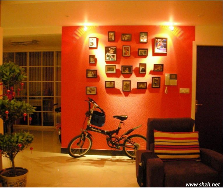 記錄甜蜜溫馨的照片墻也是上選。照片墻在現(xiàn)在的裝修中很流行,不需要煞費(fèi)苦心的來(lái)裝飾背景墻了,幾個(gè)漂亮的相框在客廳的墻上擺出造型就行。而且要是墻面足夠大的話可以將你所有的婚紗照都洗出來(lái)貼上去來(lái)“炫耀”你的幸福,以后增添小寶寶之后也可以加上去,好可愛的一家三口呢!