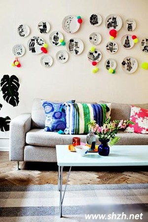貼出個性:你的家里多多少少會有一些少有破損的盤盤碟碟,對于這些有缺口的盤子要是繼續(xù)使用的話,會非常的不安全,但是扔了話又覺得太浪費了,所以日積月累,你家總避免不了存了很多這樣有缺角的碟子,那么現(xiàn)在你就把他們?nèi)磕贸鰜頀煸趬ι习桑匦聡娚掀恋纳?,隨意的掛在墻上就是極具個性的沙發(fā)背景墻了。