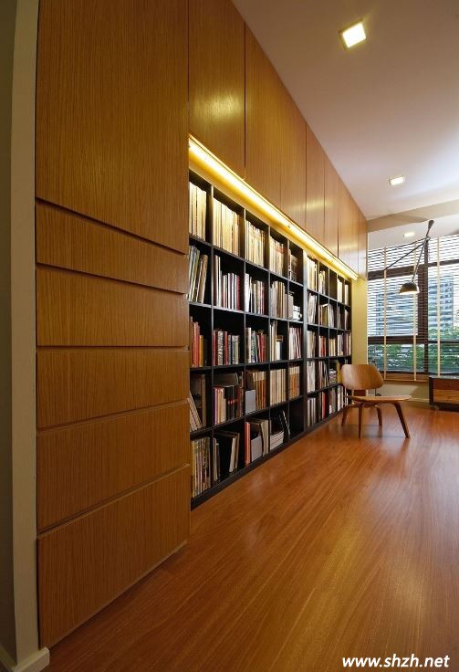 繼續(xù)原木色,繼續(xù)簡約中式風(fēng),大氣凌然的書房讓小編一下子愛上了這里,巨大的寫字臺,巨大的書柜,書房內(nèi)一切的東西好像都在說的低調(diào)的奢華。