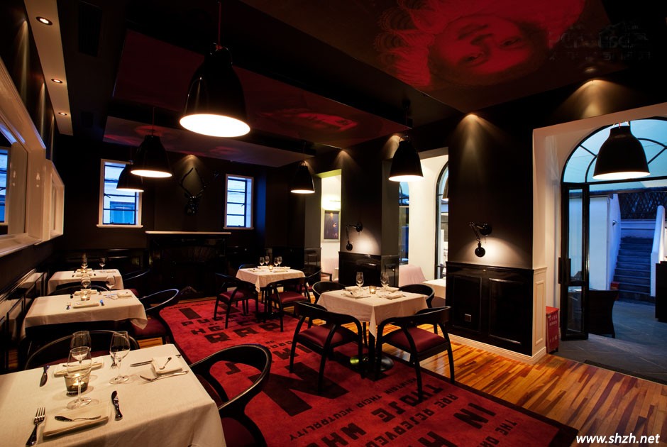 這個餐廳的吊頂設計絕對是別具一格的,天花板上陳列的居然是一系列祖先的油畫肖像,而且他們的目光讓我們感覺到了時光的流逝。傳統(tǒng)家庭肖像保持了家庭的氛圍,如果你能巧妙的將家庭照片或者畫像也進行這樣的設計,會不會特別的匠心獨運呢?整個空間凸顯出幽默的現(xiàn)代感覺,非常美妙。