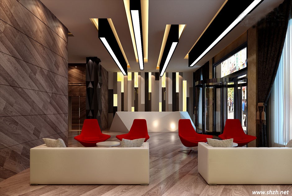 這款吊頂和天花板的造型相互對應。吊頂?shù)脑O計和地板設計是不能一分為二的,整個空間以白色為主,黑色為輔,兩者巧妙的結合,更突顯空間的時尚與奢華。而天花板的設計,不是平平整整的,而是有一定的弧線,這樣更能彰顯出空間的優(yōu)美曲線,就像一個立體的抽象畫面,給人營造出夢幻般的感覺。