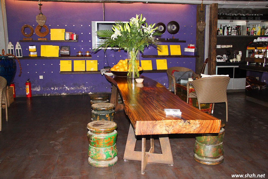 而正因?yàn)榭Х瑞^擁有來(lái)自不同地區(qū)的藝術(shù)珍藏品,使得整個(gè)區(qū)域變得純凈而自然,簡(jiǎn)潔而靈動(dòng)。細(xì)看這張自然的實(shí)木桌椅,原木的桌子,木質(zhì)紋理清晰可見,歷史的輪回,讓這張桌子變得特別的有厚重感。幾張小巧的圓凳,精致而優(yōu)雅,不同的色彩給予了它們不同的異域風(fēng)情。在這里,會(huì)讓人的心情變得更加的美好、更加的開朗。