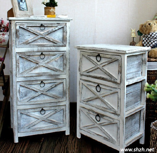 這個(gè)做舊的白色收納柜看上去有點(diǎn)臟臟的感覺,但是一點(diǎn)都沒有影響到它帶來的濃濃地中海風(fēng)情,復(fù)古的款式加上抽屜上復(fù)古的拉環(huán),好想要把我們帶回上世紀(jì)的感覺,最后,整個(gè)柜子由三層或者四層的抽屜組成,大大增加了收納空間。