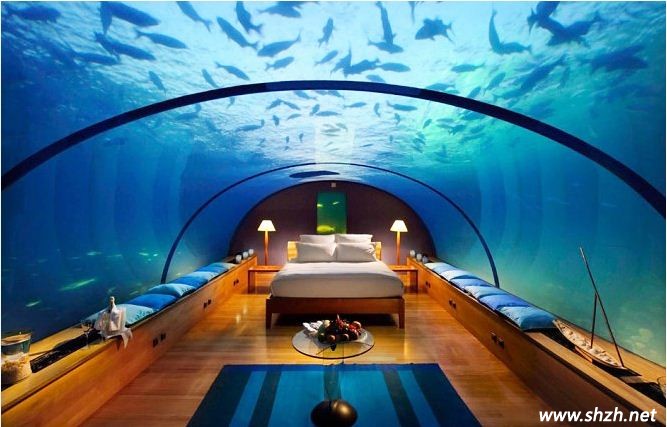 現(xiàn)代有些地區(qū)的游樂場都會有海底世界,很多人會去那里體驗海底的生活,看著各種各樣的魚在水里盡情的游蕩,三五成群的非常可愛。也許,你也會想擁有這樣的一個臥室設(shè)計,這樣可以盡情的觀賞海洋的生物,夢幻般的生活非常美妙。而今天,這樣的夢想終于可以實現(xiàn)??催@款全玻璃裝飾的海底臥室,設(shè)計師巧妙的設(shè)計不得不讓人驚嘆,充分利用了自然環(huán)境的優(yōu)勢,把自然景觀融入到臥室的設(shè)計中,仿佛徜徉在海底世界一樣,很奇妙吧!