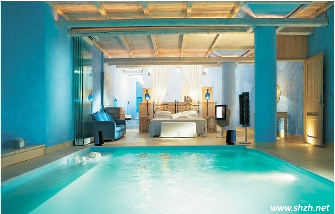 海底的世界讓您徜徉在海洋的世界里面,但是這款創(chuàng)意的設(shè)計,更能俘虜您的心,設(shè)計師巧妙的將商業(yè)區(qū)域的游泳池搬到了臥室內(nèi),而且就設(shè)計再了床腳。如果想游泳了,可以隨時隨地的下床游玩,整個臥室的空間采用了藍色作為主色調(diào),與游泳池的色彩搭配的十分協(xié)調(diào),藍色來自于海洋的顏色,給人以清涼的感覺,而這樣創(chuàng)意的臥室設(shè)計,會不會倍感清涼呢?讓酷熱的夏季遠離我們吧!