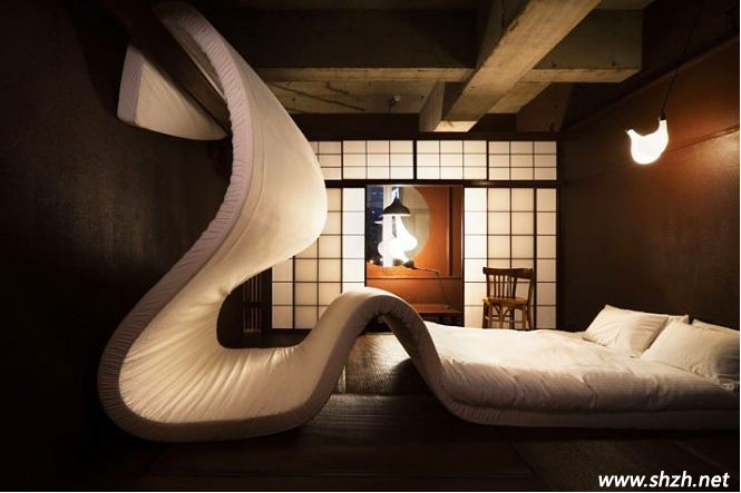 蛇造型的臥室,也許很符合2013年的設(shè)計風(fēng)格哦!一眼望去,最大的亮點莫過于這張床了,創(chuàng)意的設(shè)計,讓人既驚喜又害怕。驚喜的是,這樣創(chuàng)意的設(shè)計,讓家中一沉不變的臥室變得新奇而古怪,也讓人的心情變得十分欣喜。而害怕的是床的設(shè)計,床墊造型就像盤曲著的蛇,難免會讓人深感害怕。不過,如果您不怕蛇的話,這款設(shè)計可是創(chuàng)意十足哦,不僅功能強大,新奇的造型也會讓你過目不忘,非常神奇吧!
