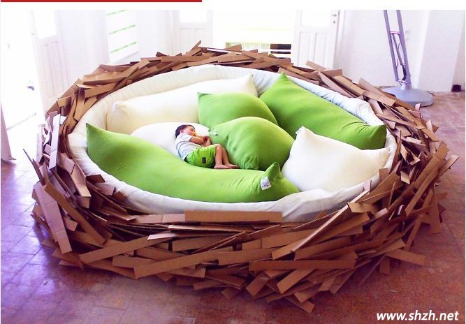 終于可以看到一款讓人心情平和的設(shè)計了,造型可愛的床造型,童趣十足,這是專門為小孩子設(shè)計的床,模仿了鳥巢的造型,說到這,你就可以想象了,不單是一張床那么簡單,也許還寓意著“早起的鳥兒有蟲吃”,小孩子,要早睡早起,這樣才能精力充沛過好每一天。