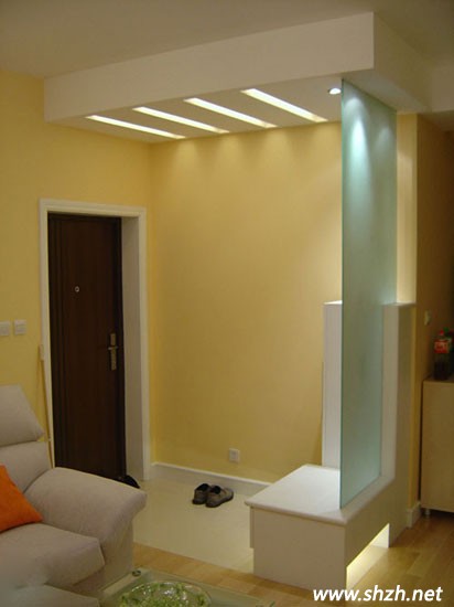 很多時候,狹小的空間更容易讓人忽視它的重要性。其實,任何區(qū)域都有可能變成家中一道亮麗的風景。這款設計,首先采用了溫暖的黃色為主色調,使得空間變得明亮而溫馨,而玄關的巧妙的采用了毛璃進行隔斷,鑲嵌在白色梯形收納柜上,整體十分協(xié)調,美觀而大方。