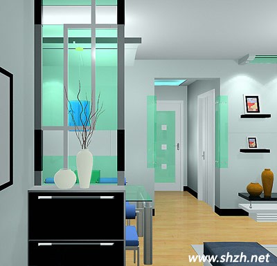 這款玄關,簡潔卻很有通透的感覺,整個客廳很有層次感,而且淡綠色的裝飾,也顯得特別清爽干凈??臻g協(xié)調性非常好。