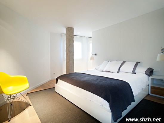 臥室的設(shè)計(jì),也許你很快就會注意到了那個(gè)水泥柱子,的確是,整個(gè)臥室最大的亮點(diǎn)莫過于水泥柱了,設(shè)計(jì)師采用了巧妙的手法,在入門處設(shè)置水泥柱,這樣就變成了入門玄關(guān),很好的保護(hù)主人的隱私,符合風(fēng)水原則。