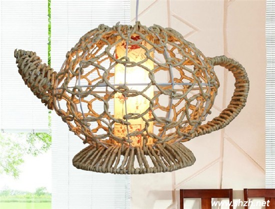 其實(shí),生活中無(wú)處不存在著創(chuàng)意,只要你大膽的想象,充分發(fā)揮你的才能,就一定會(huì)發(fā)現(xiàn)生活中,你的身邊就會(huì)有很多新奇的東西??催@款燈具,是不是很像一個(gè)茶壺?沒(méi)錯(cuò),這就是我們經(jīng)常使用的茶壺,也許在生活中你不會(huì)覺(jué)得這樣一個(gè)茶壺設(shè)計(jì)非常精巧,但在燈具上,采用了手工編制的茶壺形外罩,藤草色非常富有大自然的氣息,吊線可以調(diào)節(jié)長(zhǎng)短,非常實(shí)用。