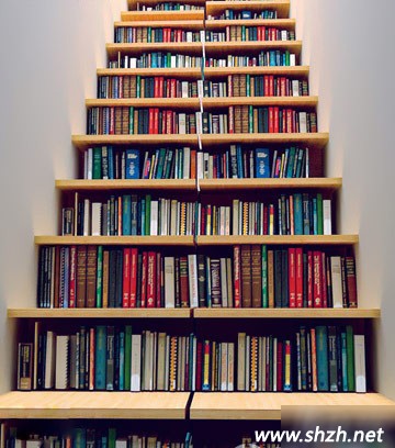 不管利用與否,樓梯始終會占據(jù)一定空間。顯然,它屬于開拓收納再合適不過的新渠道。收納的方式可以多種多樣,開放式、隱蔽式、裝飾點綴式等等,具體可以結合房間結構以及個人愛好進行設計,將它變成知識的海洋。