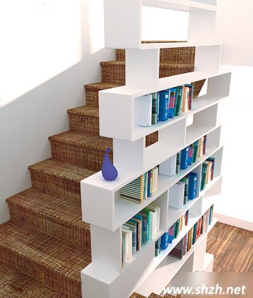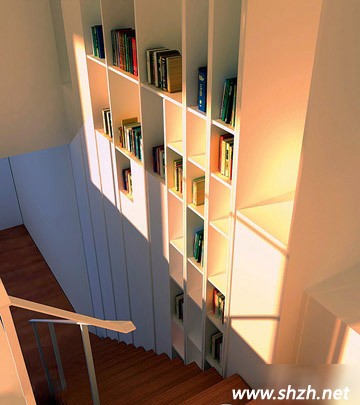 千萬別覺得樓梯旁邊的墻體除了掛照片、畫裝飾畫等裝飾用途外已無他用,既能儲物,又能收納你的書籍,那才是一舉兩得的好想法。不過,我們并不建議你將樓梯旁邊的墻體大面積掏空,因為墻體要承受整個樓梯的大部分壓力,所以,小面積的利用是更為恰當?shù)姆绞?。如果想要大面積改造,需要事先對墻體進行鋼結構加固處理,另外,還需要注意墻體的原有功能設置是否會與改造發(fā)生沖突。