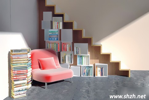 年輕人越來越難忍受自己的生活、自己居住的地方總是一成不變,而返璞歸真的風潮越來越勁,木盒子也成了時髦的物件,那么,活動的木盒子是不是也可以給樓梯周邊帶來些新鮮呢?你不妨試一試,將活動的木盒子搭建成書架的模樣。