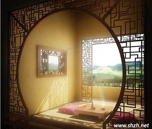 日式禪風(fēng)家居的門扉主要以格柵式的柜體設(shè)計(jì)為主,這樣能為整個(gè)空間帶來間接光源的同時(shí)產(chǎn)生明暗的層次感??蛷d與餐廳、廚房之間,可以利用特殊玻璃作為框架的推拉門扉來分隔區(qū)域,而這種特殊玻璃要與廚房主墻面上的餐具柜用相同的才質(zhì),這樣在門扉開闔之間會(huì)產(chǎn)生不同的空間樂趣??蛷d與茶道間之間可以利用圓形的透明隔屏,搭配古典的茶具作為視覺焦點(diǎn),視線可以通過客廳直接落在日式景觀露臺(tái)里。