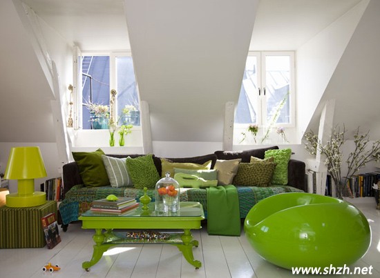 這款客廳設(shè)計(jì),首先映入眼簾的其實(shí)是軟裝的色彩搭配上,非常清新自然,仿佛被大自然包圍的感覺(jué)一樣。不過(guò),要重點(diǎn)說(shuō)的是傾斜吊頂?shù)脑O(shè)計(jì)上,狹長(zhǎng)空間采用傾斜的吊頂,從而使得空間更具立體感,在配上家居色彩,則緩和這壓迫的感覺(jué)。