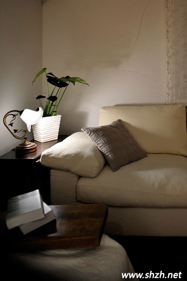 小小角落,也擁有自然浪漫的氣息。麻色的布藝沙發(fā),感覺溫暖而舒適,給小角落的裝飾更具生活的恬淡韻味。沙發(fā)邊上的小桌子,深木色打造,有種復(fù)古的氣息。桌上形狀獨(dú)特的小臺燈,潔白如玉,而旁邊的綠植,則更是讓這樣小小的空間充滿無限的自然色彩。