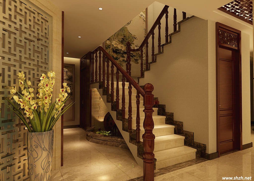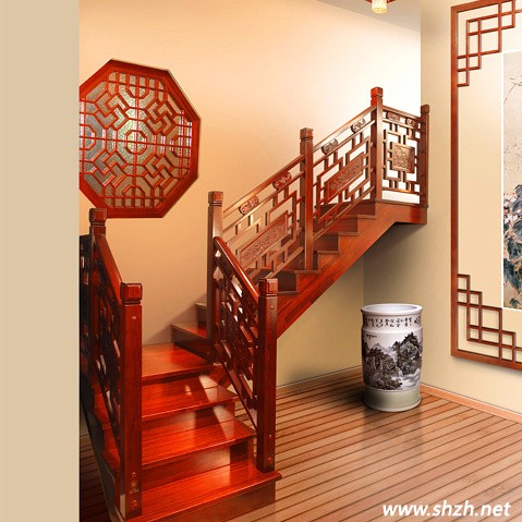 中式風(fēng)格裝修風(fēng)格能后贏得裝修市場(chǎng)的一塊蛋糕,中式風(fēng)格的樓梯設(shè)計(jì)功不可沒。當(dāng)下大多數(shù)的中式風(fēng)格樓梯均采用實(shí)木欄桿和實(shí)木踏板的搭配,再通過含有中國(guó)多特的元素如木雕藝術(shù)、鏤空圍欄。打造中式儒雅的浪漫。