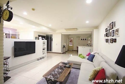 一眼望去,客廳與餐廳用關吧臺連著,是否覺得客廳餐廳特別寬敞舒適呢,空間看起來也很開闊呢??蛷d裝修風格是現(xiàn)代簡約風格,整個客廳以白色為地基,設計者為了不讓客廳風格顯得過于單調(diào),使用了顏色圖案各異的抱枕而更有時尚味道,木質(zhì)的茶幾也增添幾分美式復古感覺。吧臺的設置讓整個客廳都更加明亮起來。