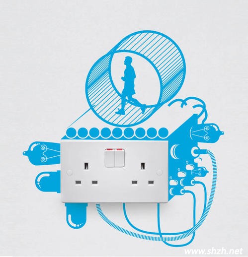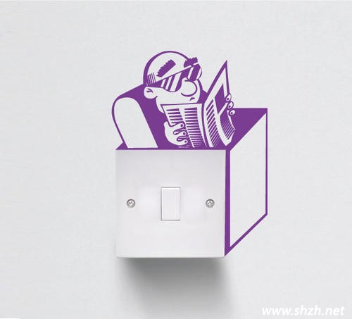 開關(guān)里面躲了個(gè)老頭在看書,靠著的沙發(fā)一定很舒服,3D效果的開光墻讓我們誤以為開關(guān)是凸出來(lái)的。